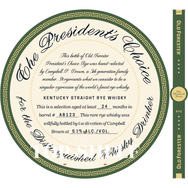 This bottle of Old Forester President’s Choice Rye was hand-selected by Cambell P. Brown, a 5th generation family member. It represents what we consider to be a singular expression of the world’s finest rye whiskey.